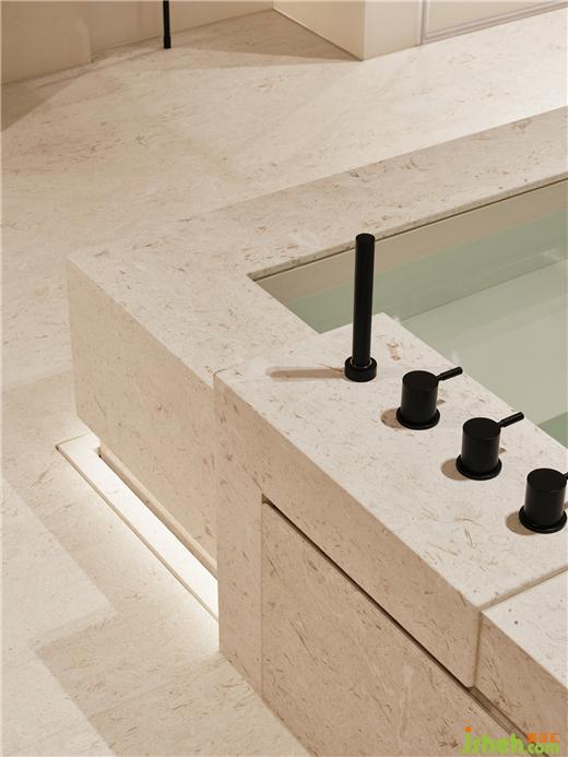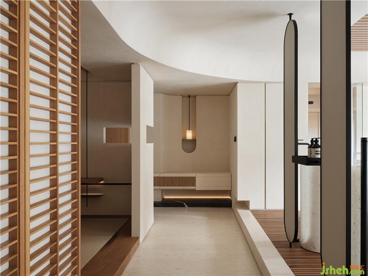 因有得天獨(dú)厚的天然溫泉,泡湯為本案注入了令人期待的沉浸式自然體驗(yàn)。浴池設(shè)計(jì)在浴室的中間,簡潔而質(zhì)樸的浴池,被流水沖刷洗滌過的自然石材,溫泉度假別墅裝修設(shè)計(jì)賦予了溫潤如玉的肌理體感。