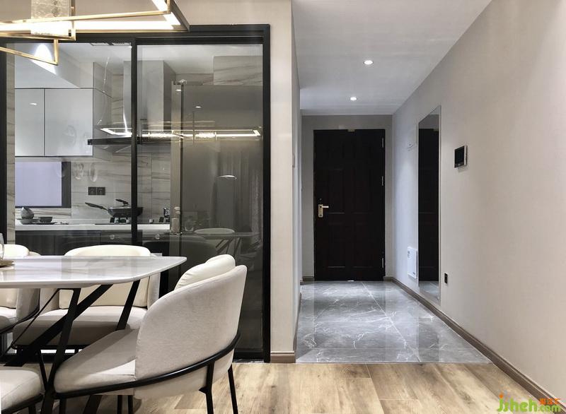 玄關(guān)中不管是淺灰色地磚和墻面大白柜,都能很好的融入現(xiàn)代簡(jiǎn)約風(fēng)格里。深圳裝修公司#簡(jiǎn)約風(fēng) 。