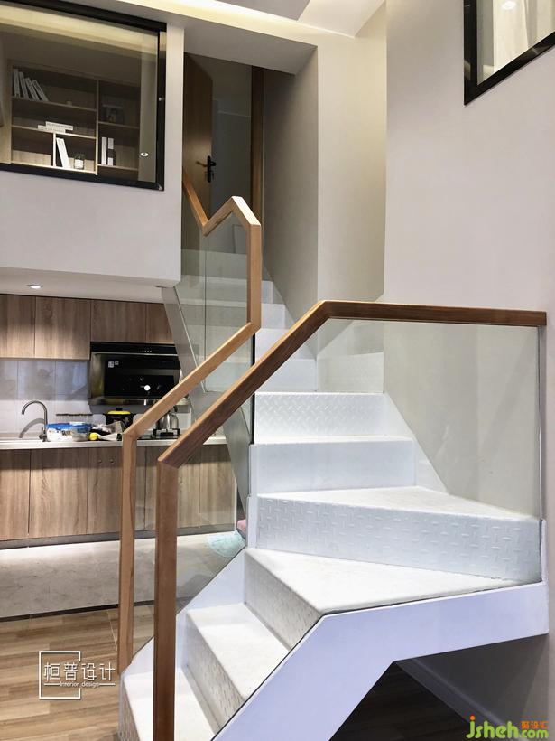 二樓層高有限,除了較為統(tǒng)一的色調(diào)外,并未加吊頂,而是選用明裝時的射燈,即可最大化保證層高也可作為裝飾使用,軟裝則采用擺放式,拉伸整個空間的視覺高度。