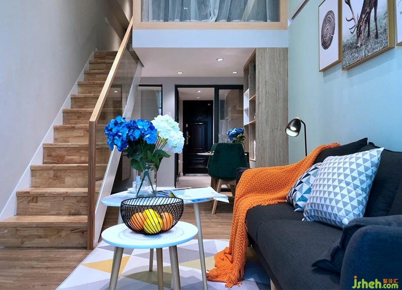 因?yàn)榭紤]是單身公寓的原因,二層空間設(shè)計(jì)為半開放形式,比起隔墻落地玻璃的的形式會大大增加空間的采光,配上輕柔的紗簾也保留了空間私密性。讓整體空間即明亮開闊又不失空間的功能性。深圳室內(nèi)設(shè)計(jì)師