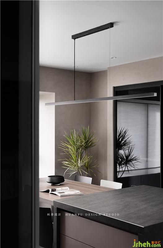 通過格局調(diào)整之后,餐廳與廚房的距離縮短,動線更流暢,中西廚分離,餐廳留有西廚區(qū)與島臺的位置,平日會客與日常烘焙都提升了便利。業(yè)主和我們溝通時開的一句玩笑話,過年的時候可以直接在島臺上和面呢,實用!實用與美觀兼?zhèn)洹?