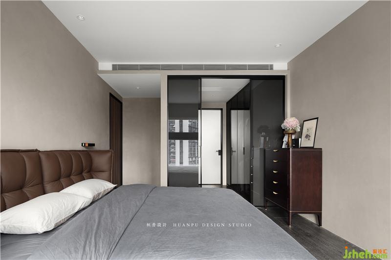 主臥沒有過多復雜的造型及裝飾,還是回歸簡單,床頭的擺放方向根據(jù)室外景觀及隱私性進行了調(diào)換。