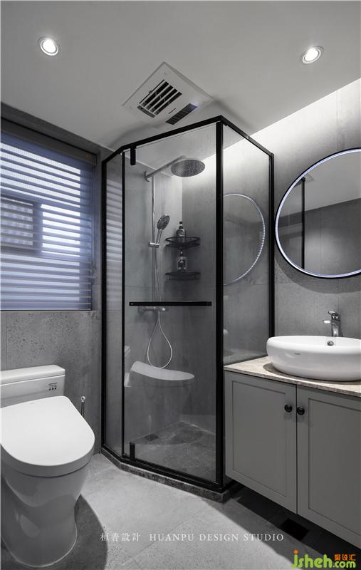 鉆石型玻璃門的浴室,將家居設(shè)計空間的利用發(fā)揮到了極致。盥洗室采用灰色大理石與材質(zhì)搭配,格調(diào)彰顯。我們在梳理空間格局時,重視強化功能與形式的統(tǒng)一性,用簡練的筆觸描繪出質(zhì)樸純粹的空間效果。