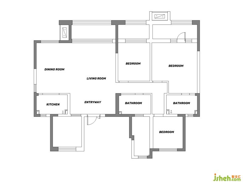 ?原戶型的贈(zèng)送面積沒有很好的利用起來,結(jié)構(gòu)無分區(qū)考慮,空間分隔零散。