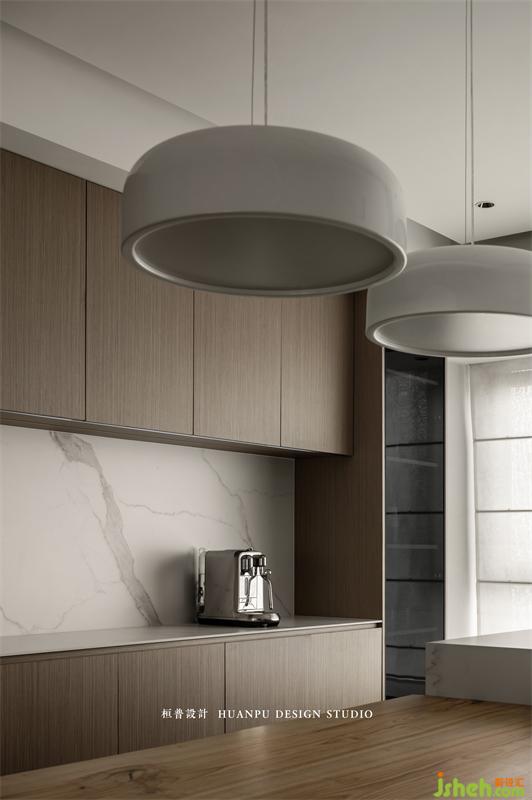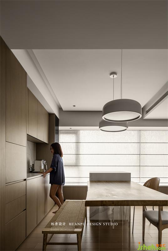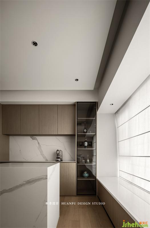 餐廳區(qū)域設(shè)置西廚功能,正面高柜提高收納空間的同時,備餐更便利。