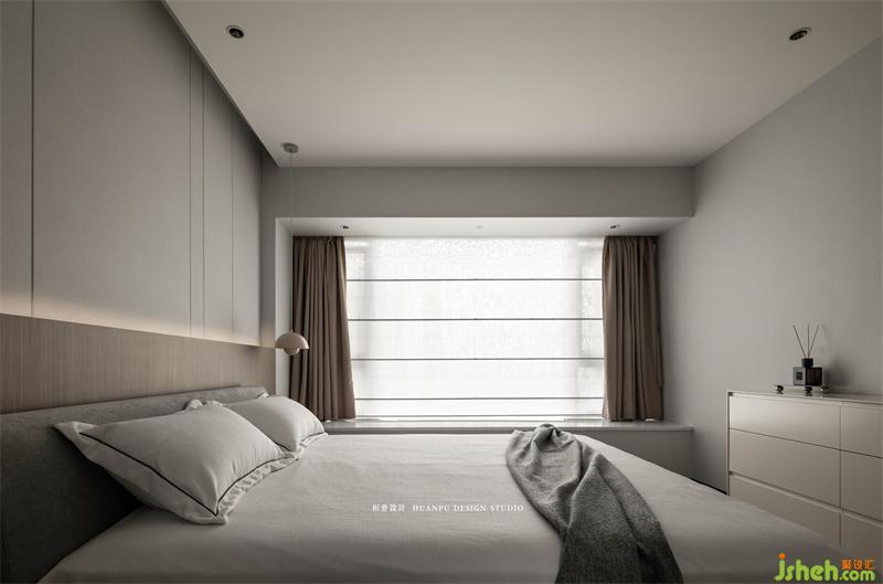 空間沒有過多的裝飾,床尾的半高斗柜除了增加空間收納功能,擺放香薰及臺燈軟飾,點綴且提升空間質(zhì)感。