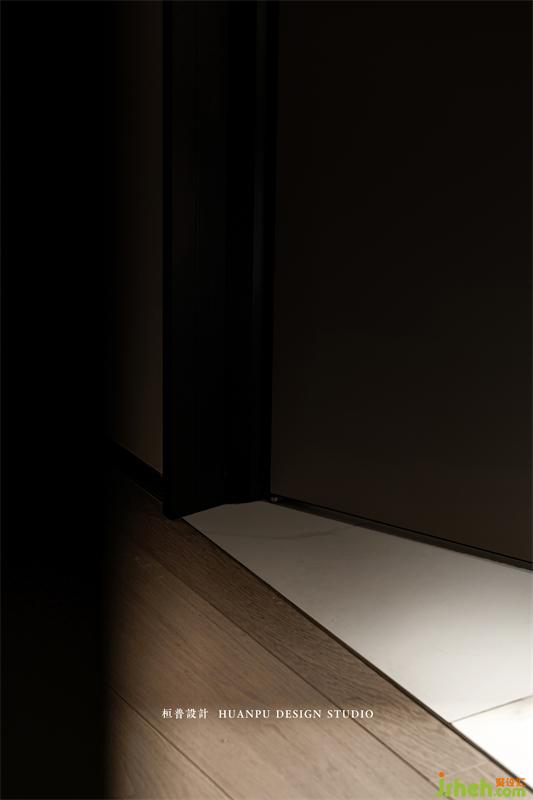 衛(wèi)生間舍棄傳統(tǒng)門檻石過渡的方式,用不銹鋼條收邊,兩種材質(zhì)的過渡更加極簡。