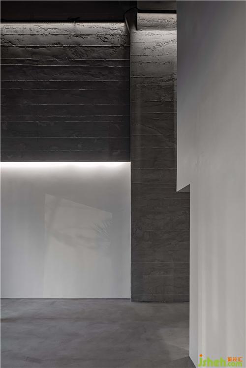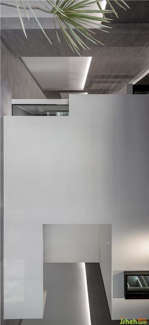 方正的室內(nèi)場(chǎng)地提供了更多有關(guān)于塑造的可能性,設(shè)計(jì)師梳理出清晰的空間邏輯,充分利用每一個(gè)平面,讓不同型號(hào)與用途的門窗去回應(yīng)場(chǎng)所的特定氛圍。粗糙的場(chǎng)地環(huán)境與潔白的建筑主體相互依托,質(zhì)感分離,傳達(dá)出抽象的美學(xué)隱喻,演繹出后現(xiàn)代主義建筑的純凈。