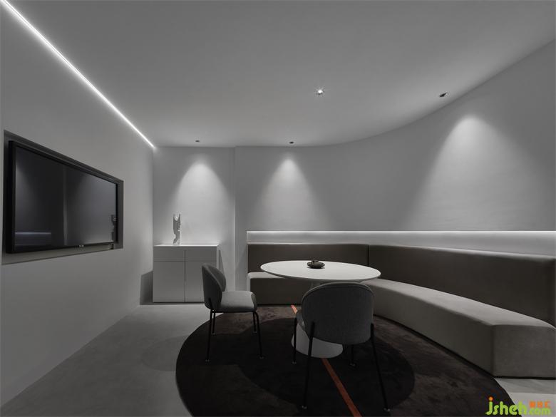 環(huán)抱式內嵌卡座傳遞出穩(wěn)定舒緩的氣息,冷靜的灰色調讓環(huán)境沉寂,系統(tǒng)門窗展廳設計更容易理清思緒,放松心態(tài),讓感官內斂,觸達的只有情緒。