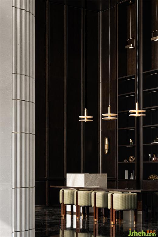 由前廳進(jìn)入,繞行接待區(qū),沙盤區(qū)端明簡(jiǎn)潔,環(huán)形燈向下籠罩城市方舟,立面肌理與石材紋理為簡(jiǎn)潔注入細(xì)膩,售樓處設(shè)計(jì)奢華感與藝術(shù)氛圍的交融由此可見(jiàn)。