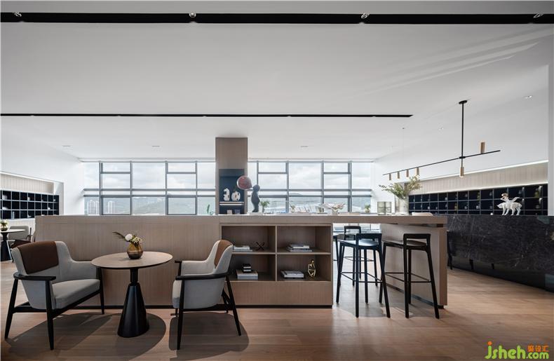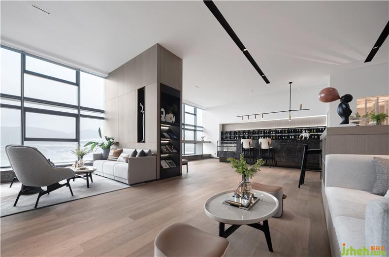 無(wú)論外界如何變幻,都可將自然的靜美攬入懷中。開(kāi)放式的場(chǎng)域搭配大面積的玻璃窗,坐在沙發(fā)上,裝修設(shè)計(jì)便能欣賞到窗外的白龍?zhí)毒吧?,自然光流瀉增強(qiáng)空間的舒朗氣度。