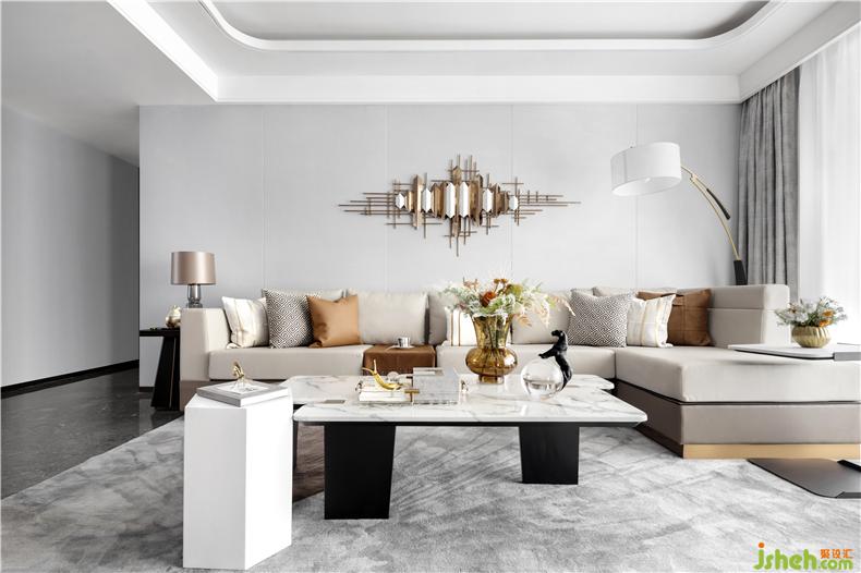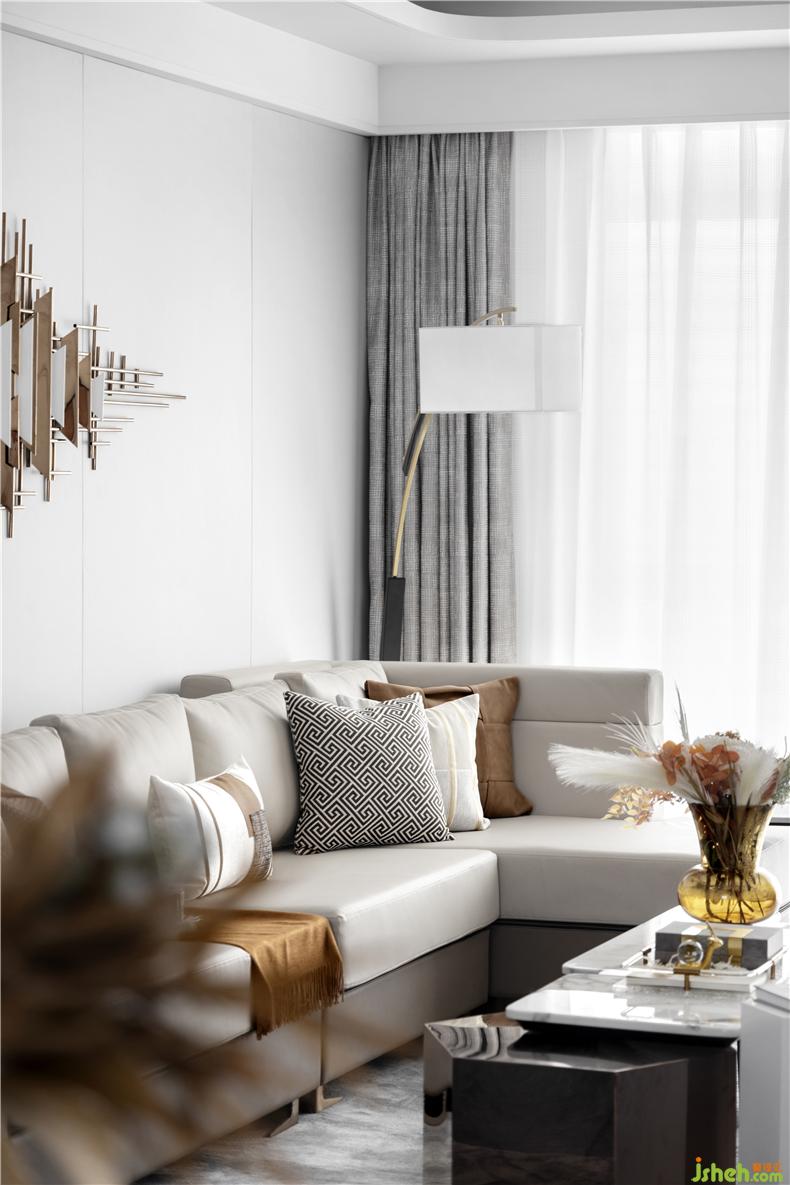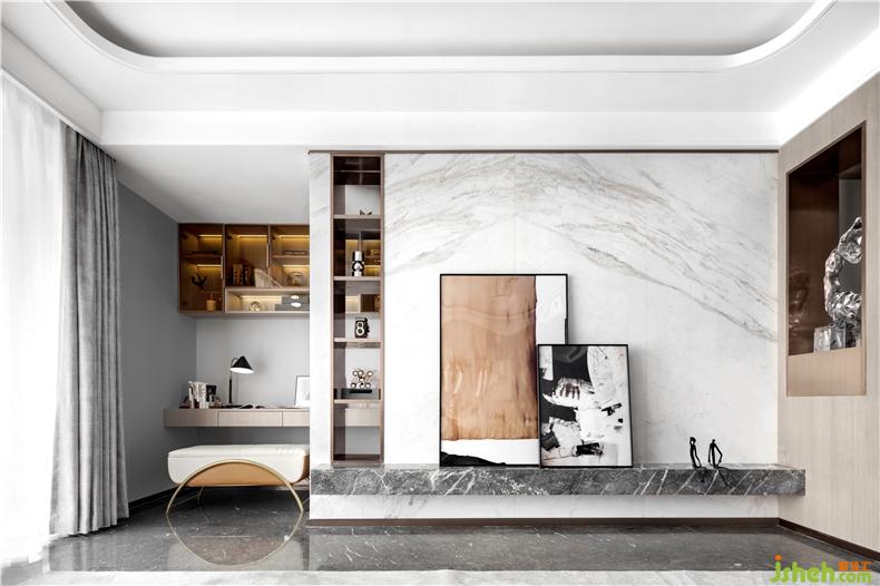 在這詩(shī)意之下,光滑的大理石映上清晨的冬日,增添了一份專屬的靜謐。素雅的空間色彩以及有序擺放的藝術(shù)擺件,在明亮的光線下慢慢浸潤(rùn)出質(zhì)感。樣板房設(shè)計(jì)