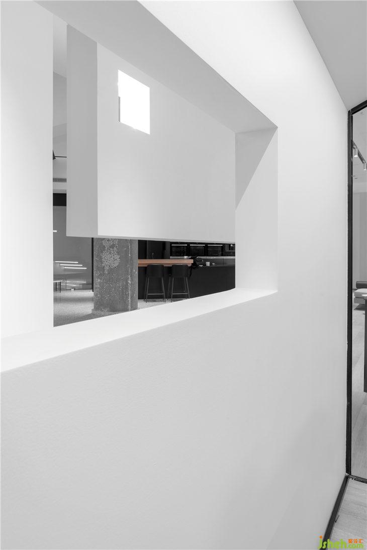 兩邊獨(dú)立又似乎對(duì)稱(chēng)的過(guò)道設(shè)計(jì),考慮到VIP接待室的人員雙向動(dòng)線性。白屋就像是過(guò)道里的一道風(fēng)景,不經(jīng)意間觸動(dòng)人心。對(duì)品質(zhì)空間的思考,用冷靜和藝術(shù)的方式表達(dá)出來(lái)。無(wú)論是結(jié)構(gòu)還是裝飾,都應(yīng)該在真實(shí)的生活場(chǎng)景中擁有生命??臻g的“自然化”和“多屬性”是一值得思考的話題。