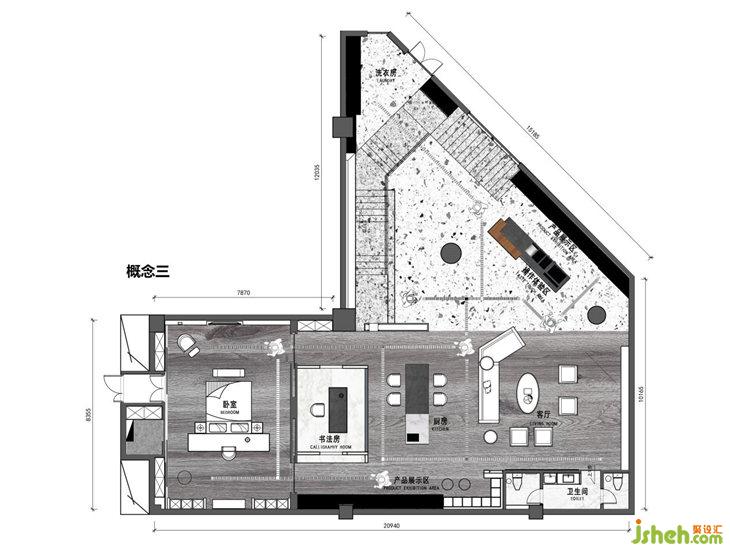 最終我們呈現(xiàn)了一個(gè)可以展示陳設(shè)、可綜合辦公、可商務(wù)接待、可藝術(shù)交流,的多組合場(chǎng)景空間。