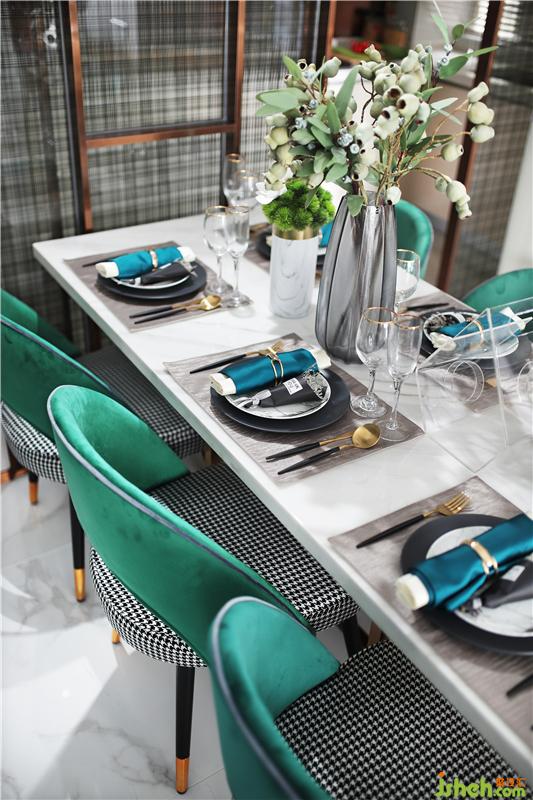 都是黑白灰,不同的材質(zhì)給人不同的視覺效果和質(zhì)感,加上金色;千鳥格的符號(hào)一如既往的時(shí)尚經(jīng)典,餐邊柜拉平了整個(gè)餐廳的平衡度,美觀又實(shí)用,柜上的時(shí)鐘是他們用在提醒女兒學(xué)習(xí)的。黃色加藍(lán)色等于綠色,金色|藍(lán)色|綠色巧妙的結(jié)合。裝修公司