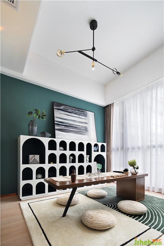 安靜中帶著禪意,是爸爸最愛呆的地方,每天都會(huì)花上幾個(gè)小時(shí)在這里,寫字閱讀思考,斗柜里都是父母外出旅游帶回來的紀(jì)念品,柜子上的靠畫也是父親的攝影作品,雖然空間里有不同的符號(hào),但并不影響它的協(xié)調(diào)和平靜。