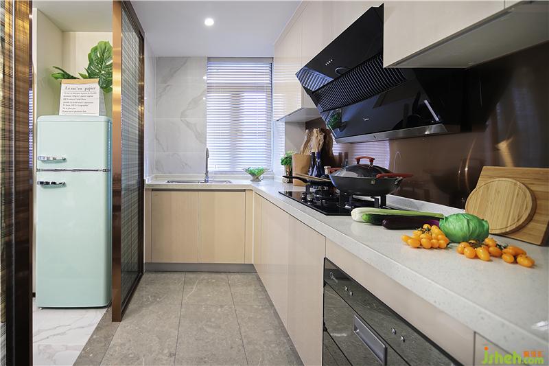 傳統(tǒng)的廚房,沒有繁瑣的造型,地柜吊柜的為儲(chǔ)藏物品準(zhǔn)備了很好的空間,不銹鋼板的墻面讓整個(gè)空間干凈又整潔,為后面的清潔節(jié)省了不少的時(shí)間。