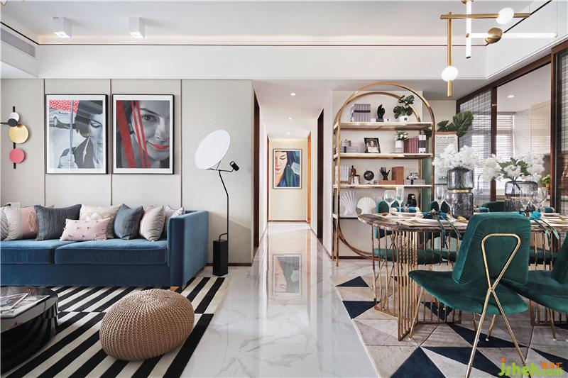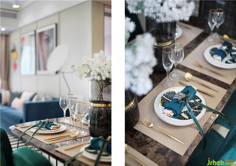餐廳是一家人享受美食的地方,旁邊金色的裝飾書柜打破了這種唯一性,用完餐來一次餐后閱讀;你洗著碗,我等著你,溫馨的畫面讓人羨慕。裝修公司