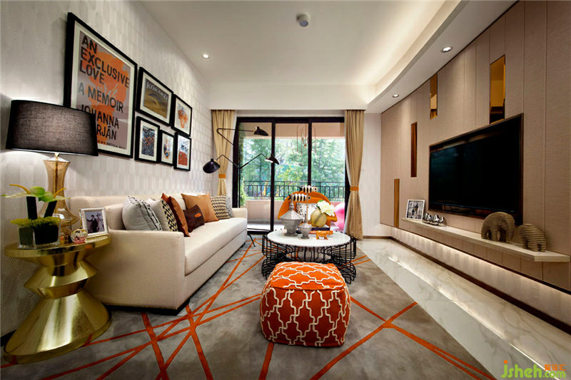 女主人單身女性,為高品質(zhì)生活追求者,希望以桔橙色和暖米色為主色彩,加以黑灰,亮金色配色來裝飾整個空間。