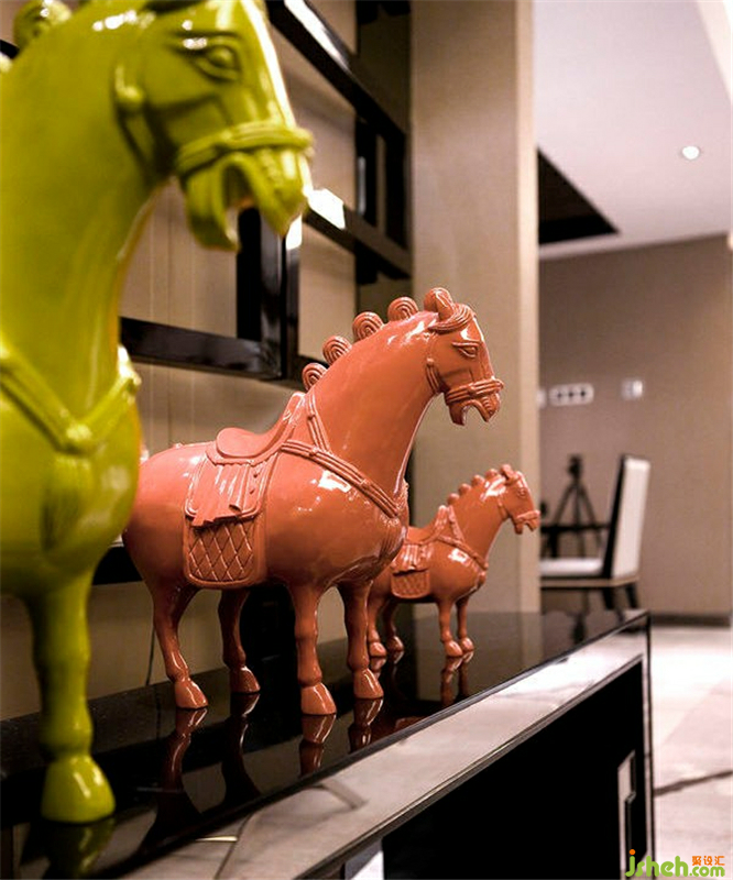 帶有中式韻味的擺件,大色塊的對(duì)比。室內(nèi)設(shè)計(jì)師