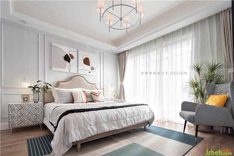 沿用空間主體色調(diào),把紅色作為點(diǎn)綴色,為空間增添有彩色。床頭柜黑與白的碰撞,圖案元素的重復(fù)組合,繁而不雜。綠植的擺放恰如其分,為空間帶來(lái)生氣。