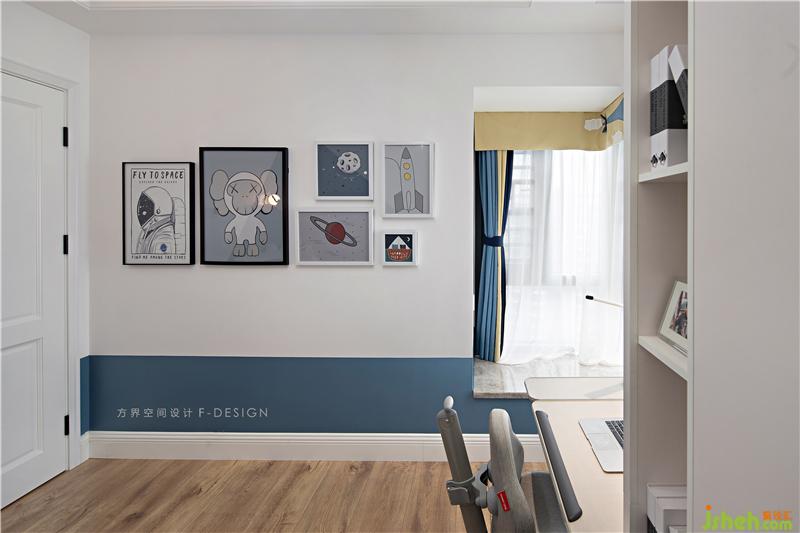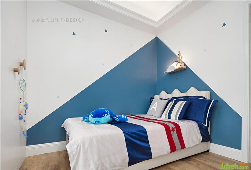 “鯨魚(yú)寶貝是媽媽在我剛出生的時(shí)候買(mǎi)給我的”,男孩跟我們開(kāi)心的分享。男孩房選用藍(lán)色作為主題色,藍(lán)色是大海的顏色,純凈,寬闊。男孩房沒(méi)有做太多的裝飾,墻面只是簡(jiǎn)單的幾何拼色,只有最單純的顏色才能喚起最強(qiáng)烈的心靈感受。