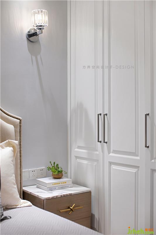 房間的頂部吊著溫馨吊燈,增加氛圍光,房間沒有過多的裝飾,床頭掛著掛畫,使本來單一的的房間有了點綴。
