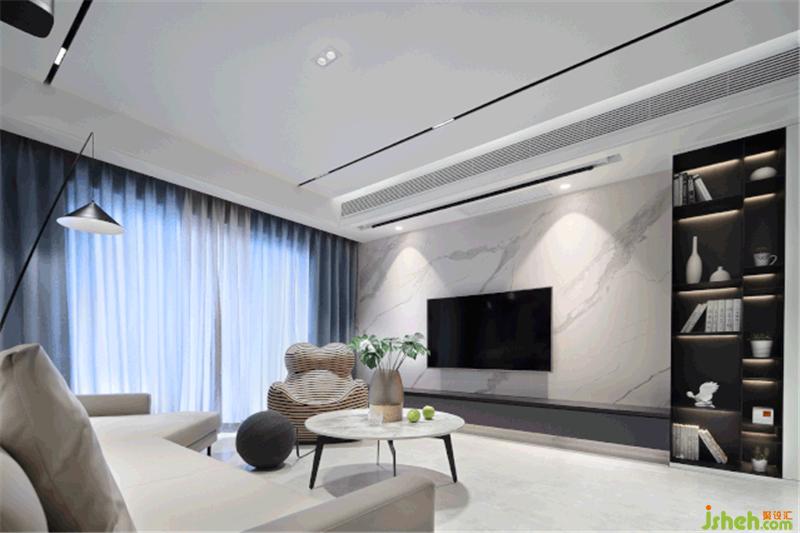 我們在天花設計時盡可能的讓空間高上去,包括電視上方的空調(diào)機位我們也放了個投影儀的功能進來,業(yè)主二人在快節(jié)奏的工作休閑之余,可以放音樂看電影。磁吸燈的運用在空間線條的運用也為我們的現(xiàn)代風格加分不少。