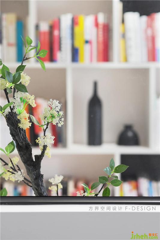書房與客廳互通,客廳的采光被巧妙的利用起來,通過透明的隔窗照射進來,整個書房采光充足,舒適溫馨。室內(nèi)設計師