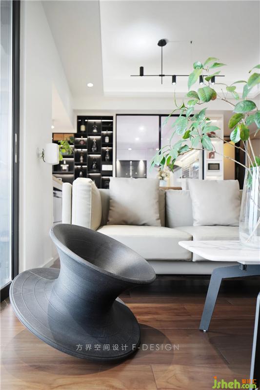隱藏在木隔墻上的隱形門是通往臥室和衛(wèi)生間,把空間隱藏起來,不僅美觀,使墻面看起來更整體,同時提高私密性,讓空間得到延伸。