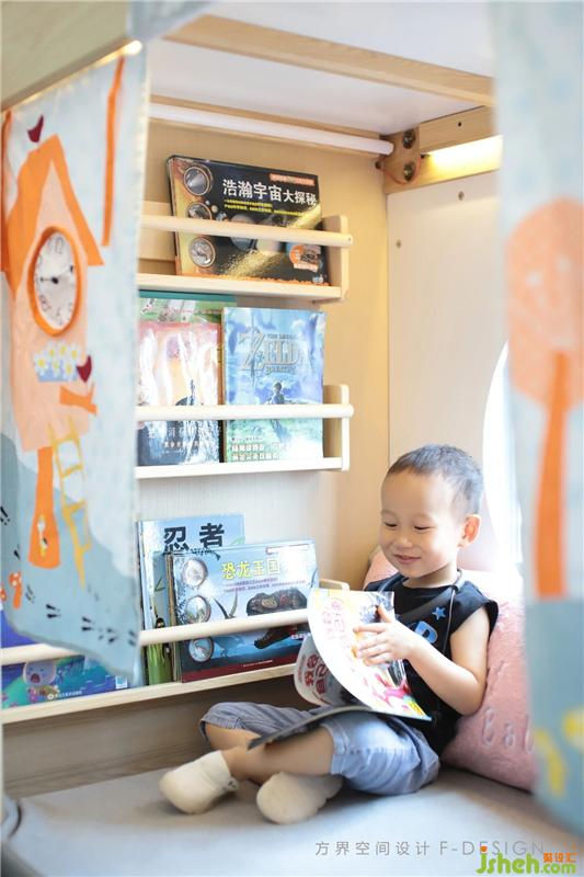 兒童床選擇的是上下鋪,休憩與娛樂空間結(jié)為一體,在床下方玩玩具、閱讀繪本,那是獨屬于小主人公的“秘密基地”。室內(nèi)設(shè)計師