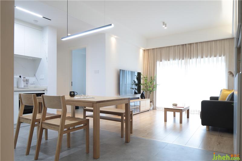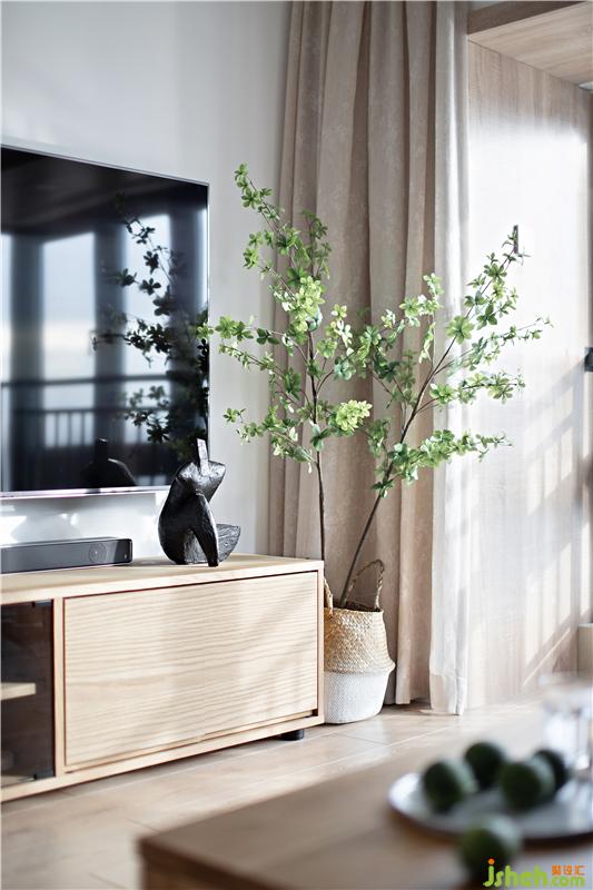 全屋以白色與原木色穿插交錯(cuò),大量留白的空間讓視覺放松下來,化繁為簡(jiǎn),擯棄過多的修飾,營造出安靜淡雅的氣質(zhì)。窗簾采用米白色布簾,采光好且更顯溫柔雅致;生機(jī)盎然的幾處細(xì)枝綠葉,為靜謐平和的空間增添一抹生機(jī)與活力。