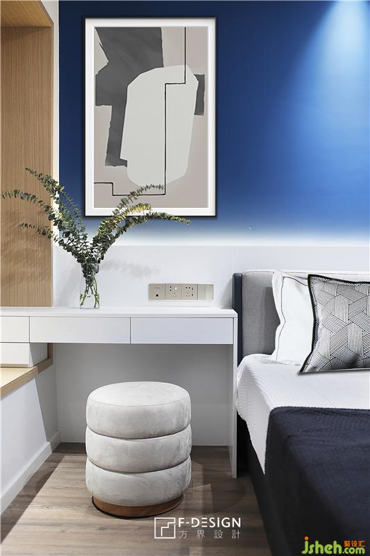 主臥,一大扇飄窗,讓主臥顯得寬敞明亮,空間以柔和的藍(lán)色作為床頭背景墻,窗外的夜色也與之相呼應(yīng),室內(nèi)設(shè)計(jì)師讓臥室空間多了一分靜謐,變得更具溫情。一切以舒適為主,業(yè)主能在這樣的氛圍中更好的放松。