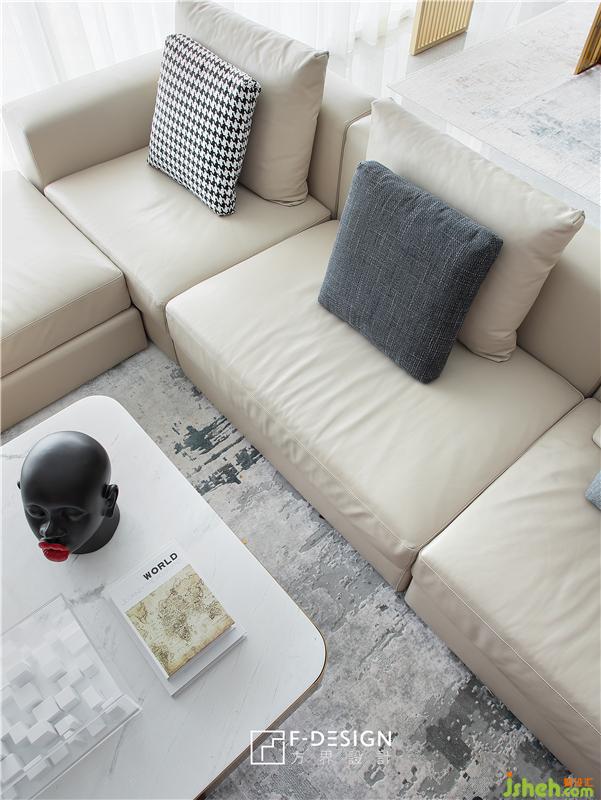簡(jiǎn)約的白色茶幾、個(gè)性的擺件、舒適的沙發(fā)、柔軟的地毯,無(wú)一處不是彰顯著家的精質(zhì)感。