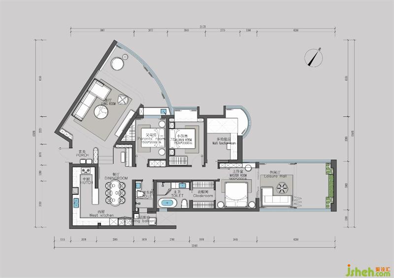 2.將客廳與陽臺(tái)互通,加大客廳的通透性。