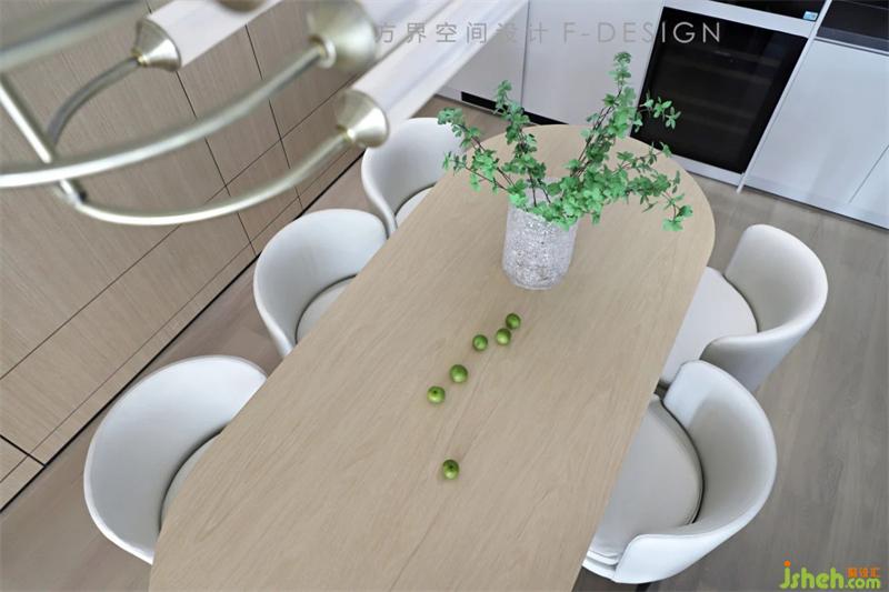 3.把餐廳和廚房打開,增加吧臺(tái)功能,加大空間的互動(dòng)性。