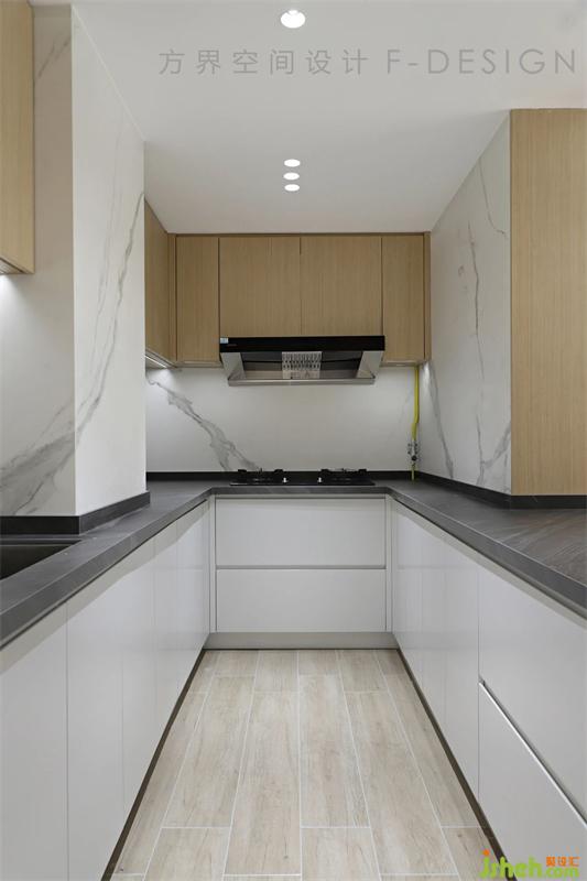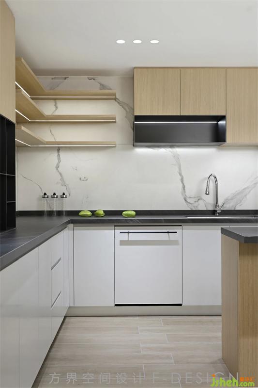 原廚房采光非常差,在改造為開放式廚房后,解決了采光以及空間利用率的問題,大大增加空間趣味性,互動(dòng)性。