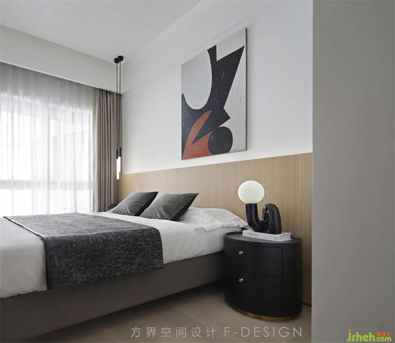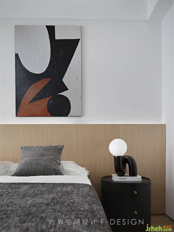 臥室的實(shí)木質(zhì)感的木地板,讓整體的睡眠空間更加溫暖細(xì)膩。床頭的藝術(shù)掛畫(huà)在空間起到了畫(huà)龍點(diǎn)睛的作用