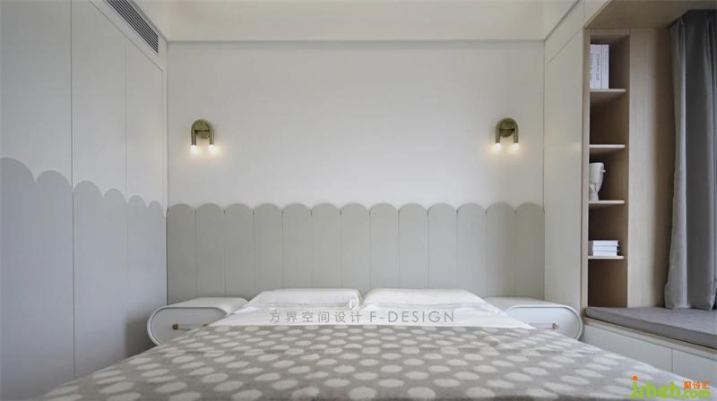 衣柜門(mén)圓弧形造型與床頭靠背呼應(yīng),圓與圓之間的相互碰撞。