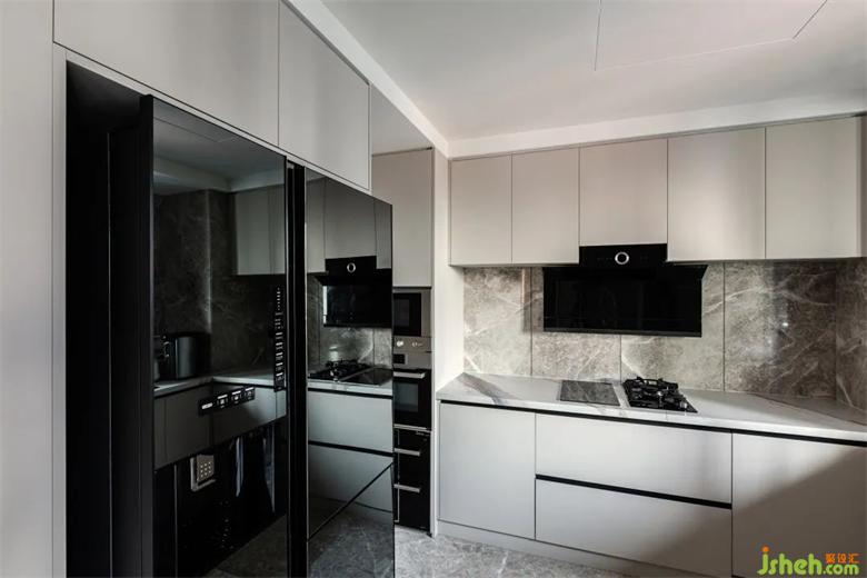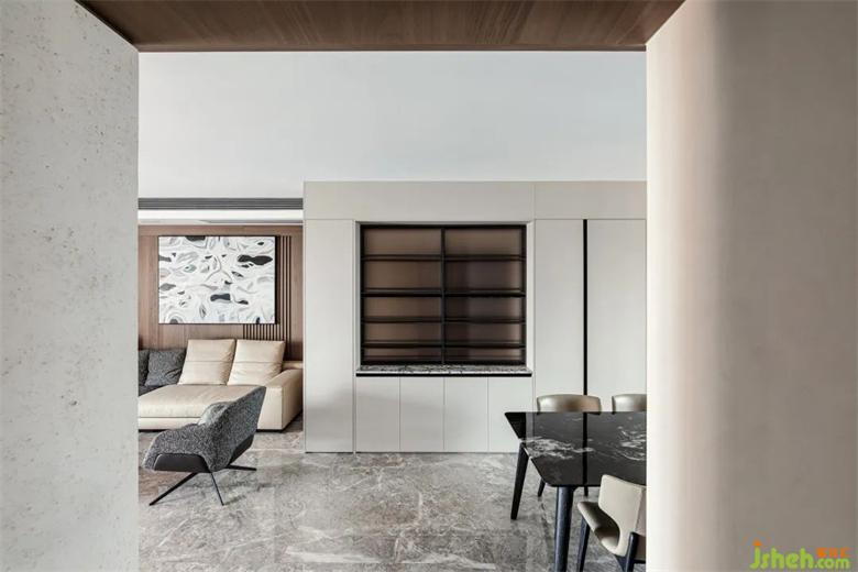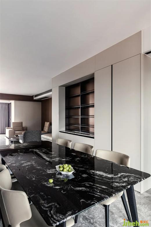 黑色大理石桌面,極簡主義汲取靈感,華潤幸福里公寓設(shè)計將藝術(shù)審美暗藏于內(nèi),靈動色彩、高雅氣質(zhì),點綴精致每一餐