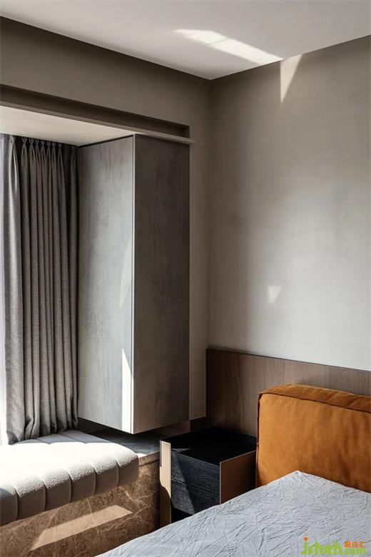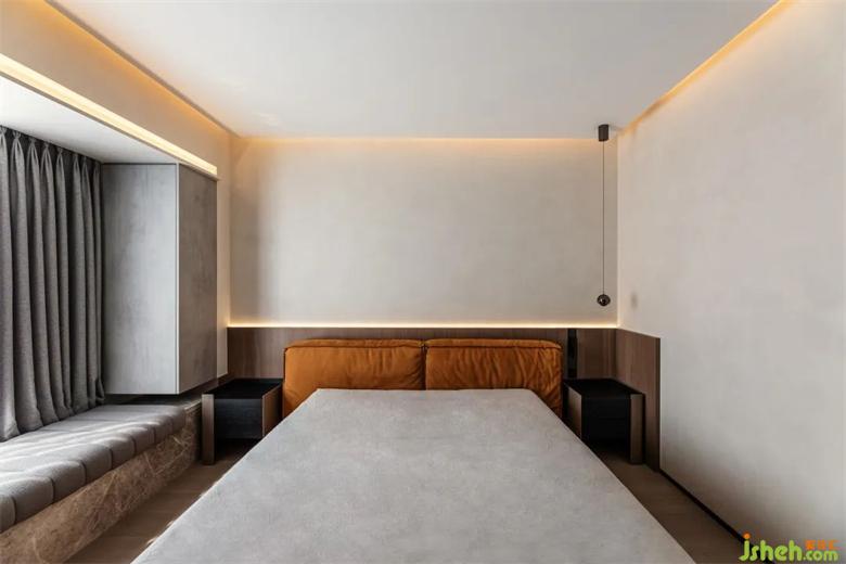 臥室中簡約的配色加上一角桔黃,時尚優(yōu)雅的質(zhì)感頓時凸顯,營造安心舒適的居住氛圍。