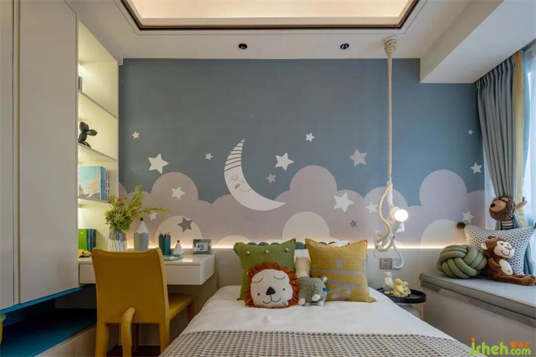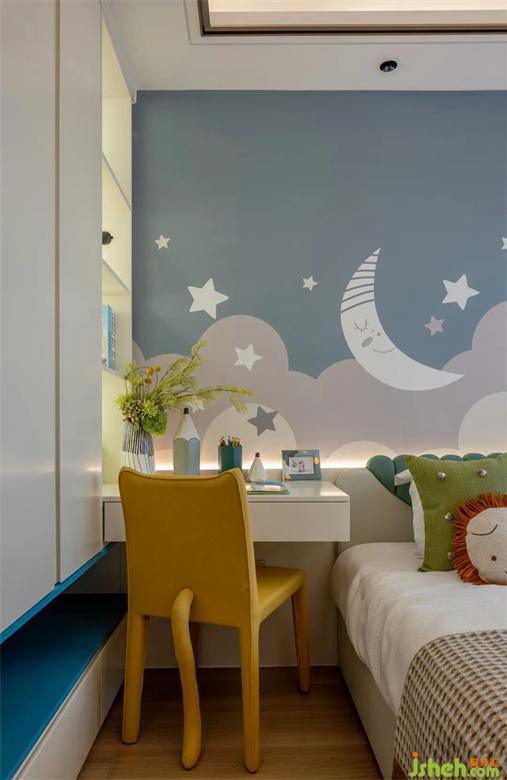 蔚藍(lán)可愛的兒童房承載了孩子們整晚的夢境。