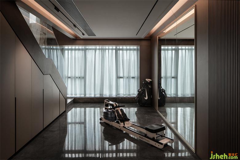 客廳和健身區(qū),擁有絕佳的視野,得益於建築本身的高度和朝向,TRID添睿室內(nèi)設(shè)計(jì)使得大面積的落地窗不僅讓室內(nèi)采光極好,自然更與空間相互融合,家人在這裏享受歡愉時(shí)光。