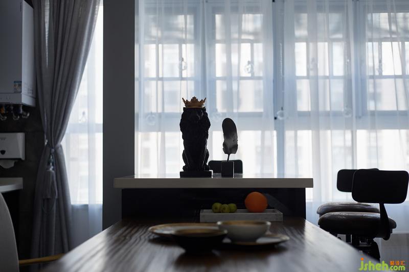 為了讓餐廳和客廳有連貫性,將餐廳的一面墻用實用的柜體和水泥灰磚墻融為一體,延伸到客廳區(qū)域,使餐廳、客廳相互呼應(yīng)。
