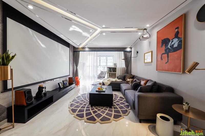 客廳是家里的中心地帶,用100寸的投影幕布代替電視機,考慮到看電影會比較舒服,以后有小孩了看幕布也不會傷害眼睛。