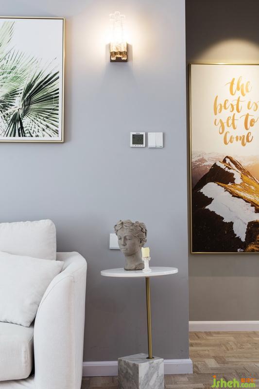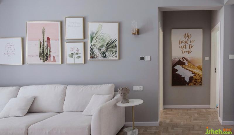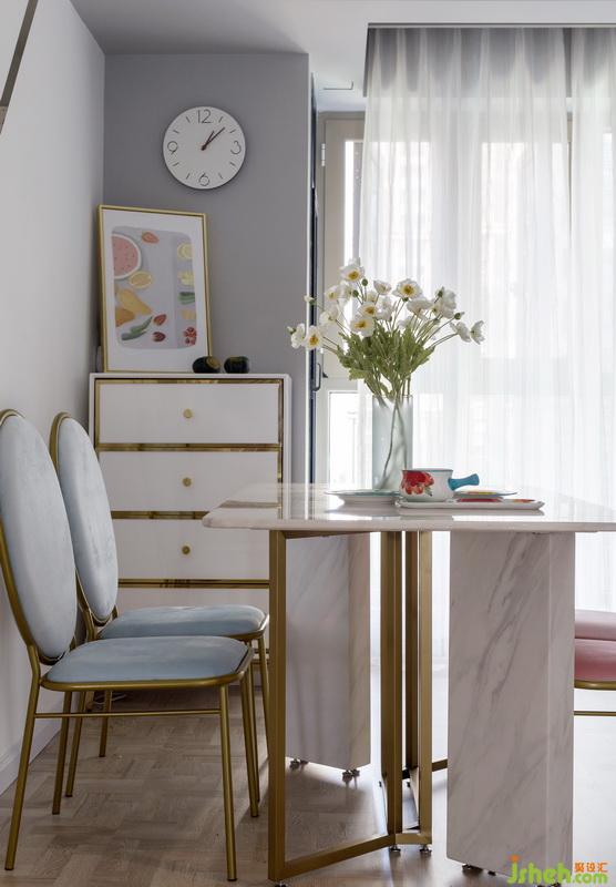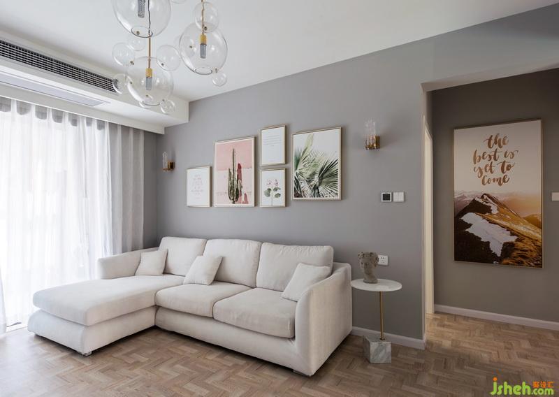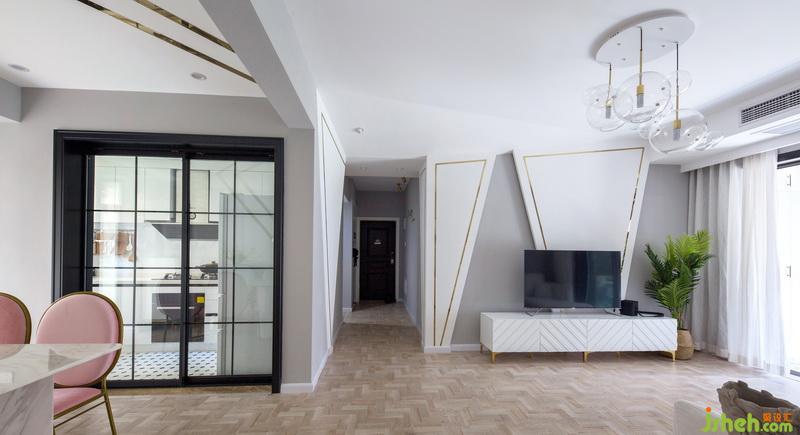 灰色主調(diào)的素雅與少女粉的跳脫,柔軟軟裝與利落三角形造型,玻璃吊燈與綠植的點綴,交織出美觀而質(zhì)感視覺,描繪出愜意舒適的居家品位