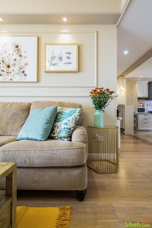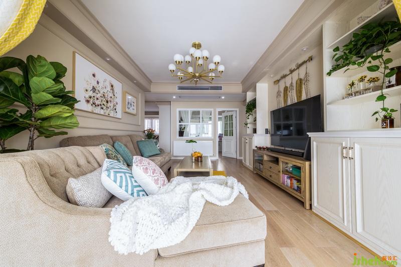 客廳延續(xù)簡(jiǎn)單大方的美式格調(diào),在家具材質(zhì)及顏色的挑選上下足功夫,看似不經(jīng)意,卻又和諧無比,連通陽臺(tái)引入陽光,使采光充沛,配以綠色植物,讓整個(gè)空間充滿勃勃生機(jī)。