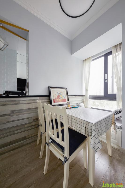 廚房墻體全部拆除形成開放式廚房然后整個(gè)起居室空氣更加流通,更加寬敞,餐廳拆拆除了原有的飄窗,做成卡座既可以作為餐椅使用同時(shí)也能作為餐廳的儲物,還擴(kuò)大了餐廳的使用空間,餐廳采用地板上墻的方式做護(hù)墻板避免餐桌磕碰的問題,護(hù)墻板周圍采用黑色飾面板勾邊與客廳電視柜黑色柜體勾邊相呼應(yīng),同時(shí)黑色的勾邊與柜體和護(hù)墻板的顏色形成對比,提升顏色的層次感。