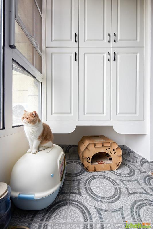 陽臺就是專屬于加菲的空間了,陽臺柜下面鏤空特地為可愛的加菲預(yù)留了睡覺的空間。