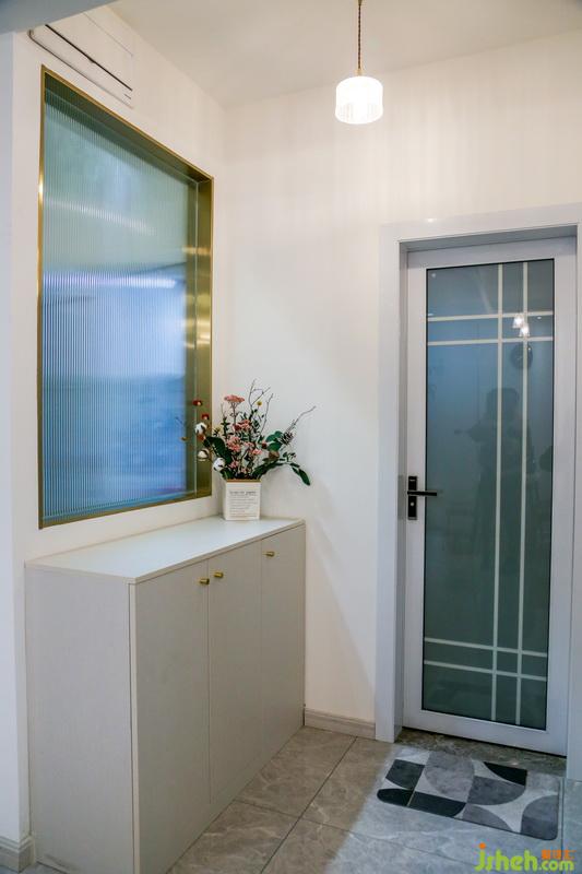 半透明式的隔斷設計,既能遮蔽后側的房間門,又不會影響整體空間的采光,視覺上也有種特別的風情